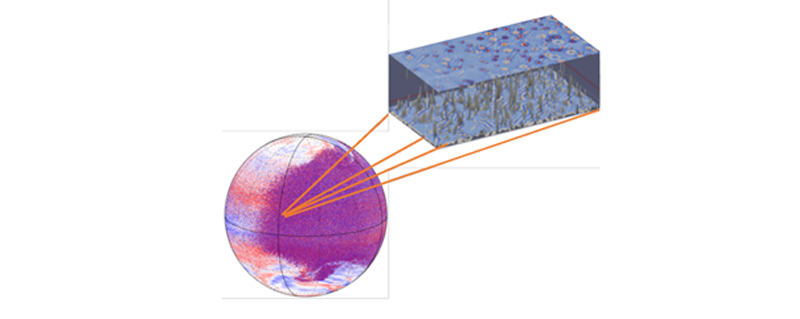 火星大気の全球高解像度シミュレーションで計算された鉛直流分布と鉛直対流の様子。